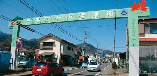 閑静なたたずまいを見せる旅館が点在する七沢温泉まで15分