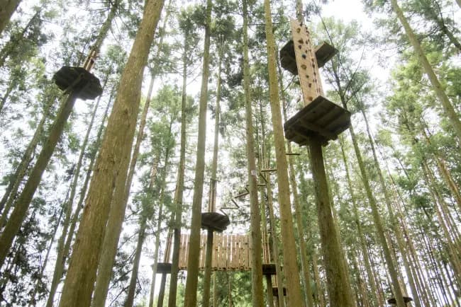 スリルと爽快感に満ち溢れたアスレチック「ツリークロスアドベンチャー」まで15分、