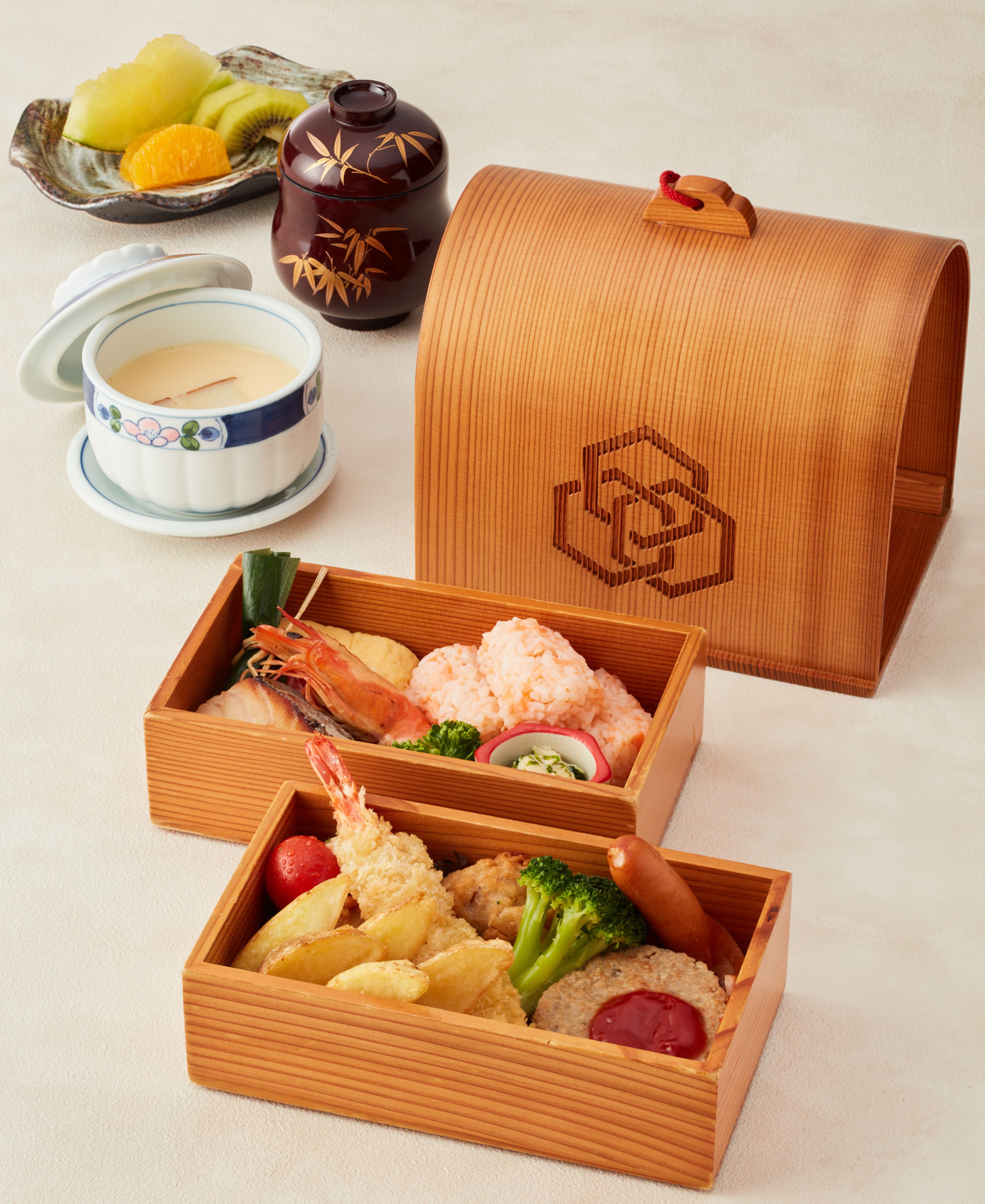 ・1段目:オムレツ/ハンバーグ/ポテト/エビフライ/たこさんウインナー/唐揚げ