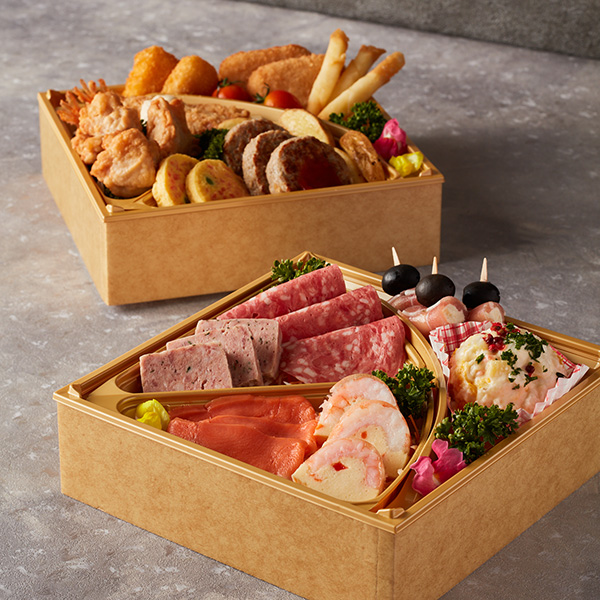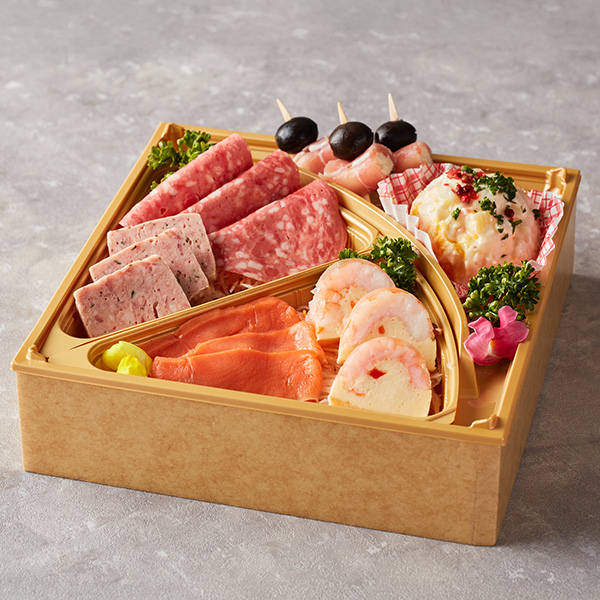スモークサーモン、海老のテリーヌ、自家製ポテトサラダなどお酒にも合うおつまみBOX