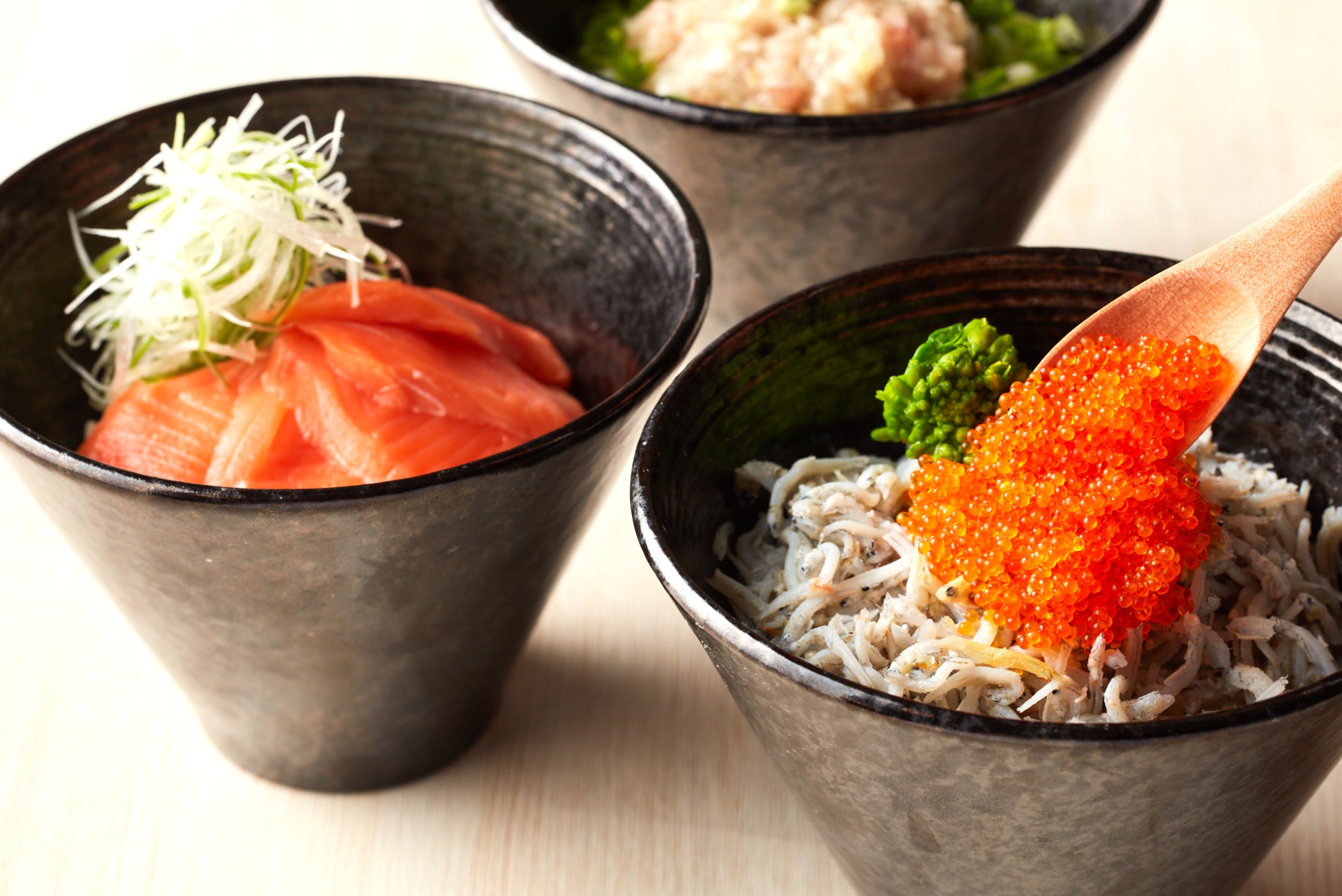 ★海鮮ミニ丼コーナー (サーモン/ねぎとろ/しらす&とびっこ)
