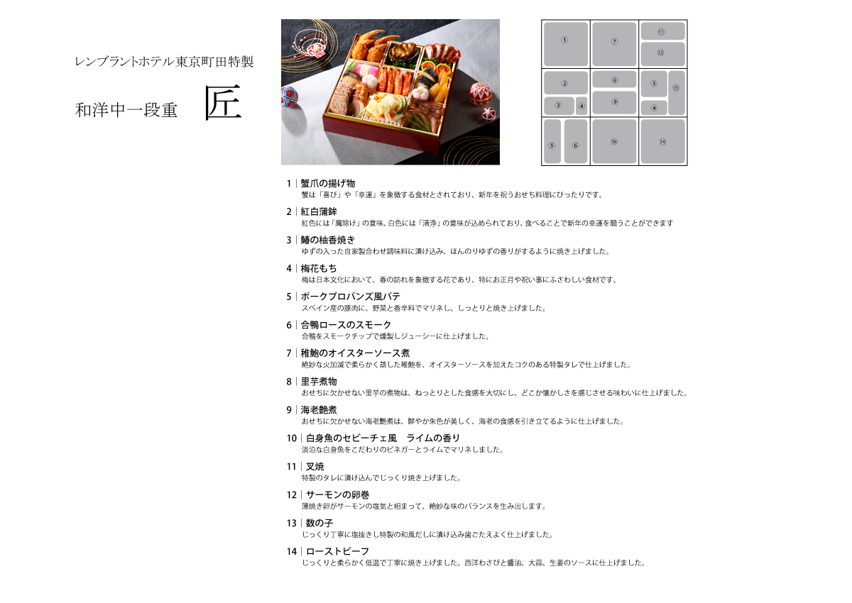 X(旧Twitter)キャンペーン7弾レンブラントホテル東京町田おせち料理予約受付記念ホテル公式X(旧Twitter)フォロー&リポストでレンブラント豪華おせち料理 一段重[14,000円]が 抽選で3名様に当たるキャンペーン