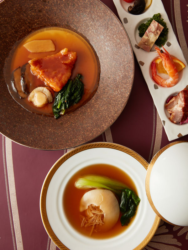 当ホテルの中国料理・龍皇の料理長が奏でる最高クラスのコースです。フカヒレの姿煮やロブスター・牛サーロイン・タラバ蟹・鮑・金華ハムなど豪華食材を用いた最高クラスコースです。ビジネスシーンでの大事なお客様のご接待をはじめ特別なお席向けのコース内容となっております。