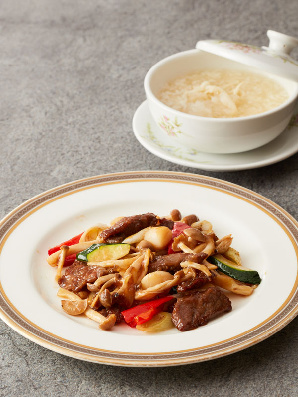 ・牛サーロインと椎茸の醤油味仕立て