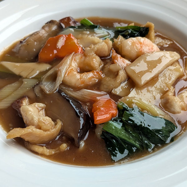 豆腐を主役にしたヘルシーな料理で、様々な野菜が彩りよく盛り込まれています。豆腐のクリーミーさと、野菜のシャキシャキ感が楽しめ、栄養価も高いです。精進料理としても人気があり、肉を使わないため、あっさりとした味わいが特徴です。