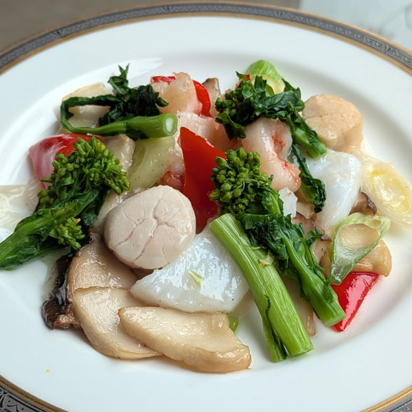 A.大海老、帆立、烏賊、菜の花の炒め(中盆)¥3,200